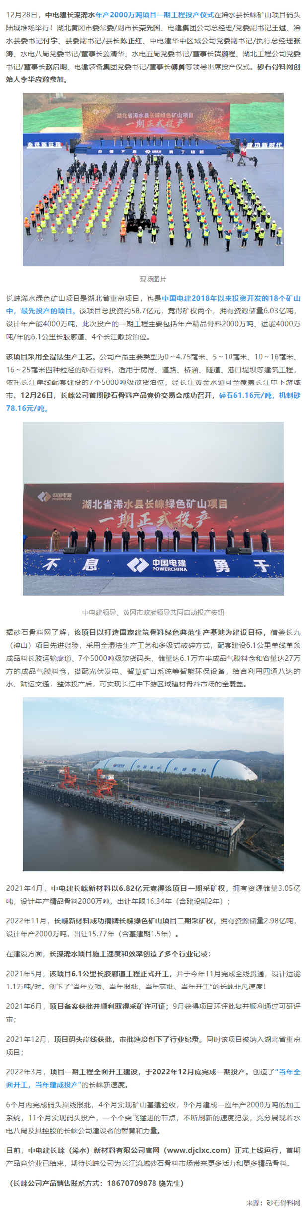 【砂石骨料网】重磅 | 中电建长崃浠水年产2000万吨一期工程今日正式投产