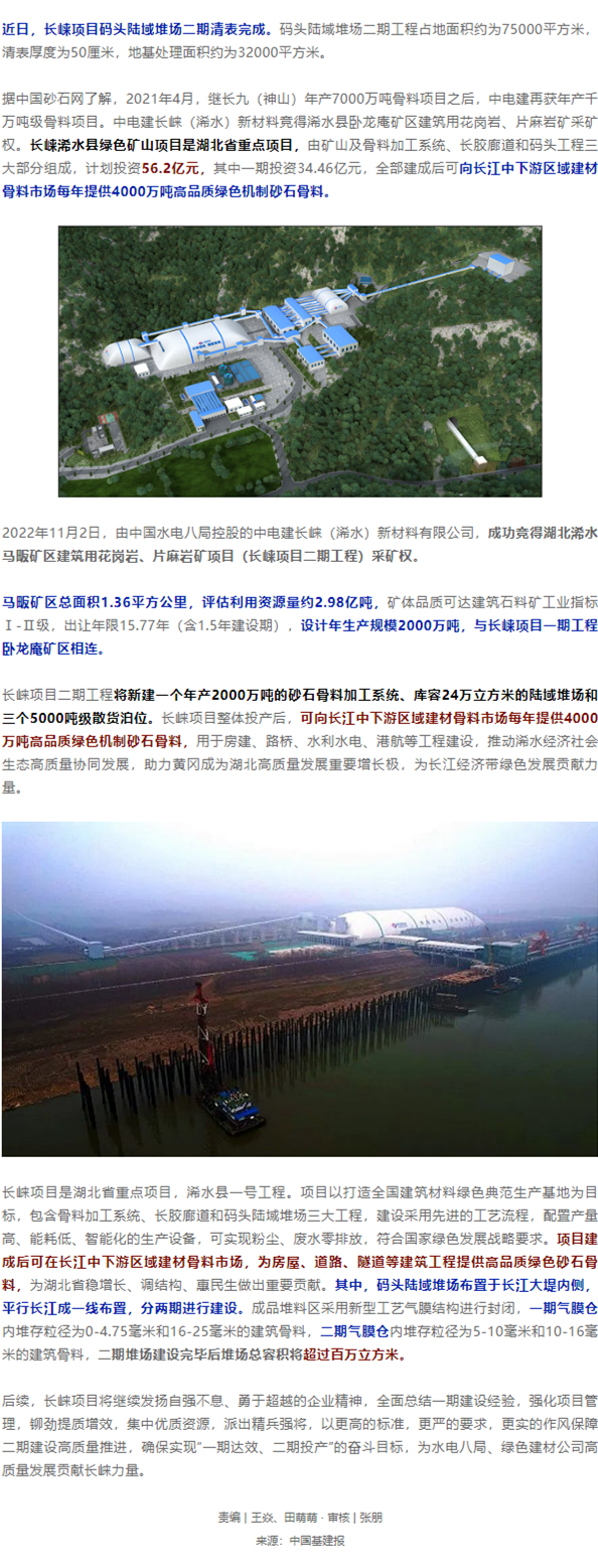 【砂石骨料网】关注 | 年产4000万吨!中电建长崃骨料项目最新进展