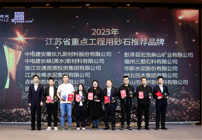 3月28日至29日,江苏省砂石发展及绿色建材转型升级专业论坛在江苏镇江召开,长崃公司获“2023年江苏省重点工程用砂石推荐品牌”荣誉称号。