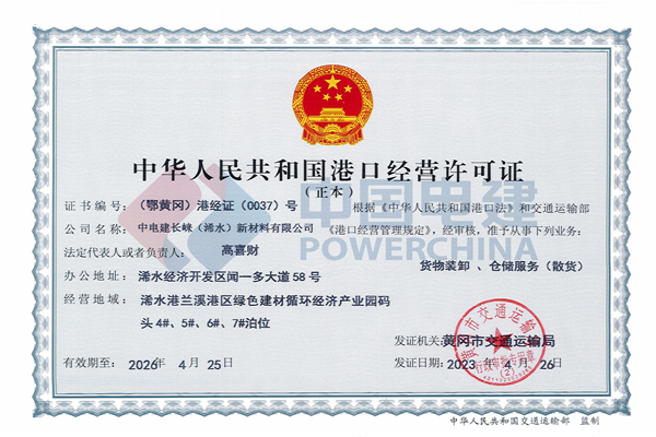 4月26日,长崃公司取得黄冈市交通运输局颁发的港口经营许可证,再次创造“非凡速度”。