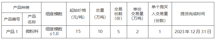 1. 本期竞价产品细度模数≤1.0,竞买人需实地查看检测,确定满足自身需求后参与竞价。