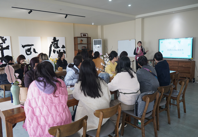 聆听文化讲座,感受非遗魅力。非遗技艺传承人为女员工们带来了一场生动的辑珠文化讲座。从辑珠的历史起源、发展脉络、技艺特点及其在中华文化中的重要地位,娓娓道来,深入浅出地展现了这项传统工艺的独特魅力。辑珠是一种将小如米粒的珍珠、珊瑚或其他宝石串联编制成花纹形态各异的装饰品的技艺,曾在古代服饰中广泛应用,从龙袍凤冠到翠翘珠钗,无不彰显其精湛工艺和艺术价值。女员工们听得津津有味,不时发出赞叹声,为能近距离接触如此精湛的技艺而感到兴奋不已。