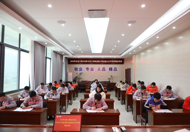 在技能鉴定现场,员工们纷纷拿出自己的看家本领,认真应对每一个考核环节,气氛紧张而热烈。有的员工以扎实的砂石系统运维理论基础,在理论考试中表现出色;有的员工凭借熟练的技能和丰富的经验,在实操考核中大展身手,迅速完成皮带胶接修复等任务。本次技能等级认定的评委由多位技术专家及项目一线骨干担任,他们对考生的理论知识、实操能力进行了严谨公正的打分,并给出了相应的技能等级认定。