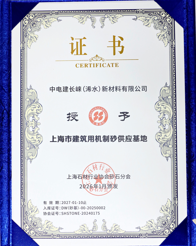 近日,湖北长崃公司凭借卓越的产品质量、稳定的供应保障和专业的服务能力,获评“上海市建筑用机制砂供应基地”和“2025年砂石行业五星级金牌供应商”称号。这两项荣誉不仅是对湖北长崃公司产品品质与供应能力的权威认可,更是对公司多年来深耕市场、服务客户所取得成绩的高度肯定。